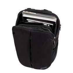 2 κεντρικές θήκες. Η μία με ευρύ άνοιγμα (quick access) και δυνατότητα μεταφοράς laptop έως 15,6″.